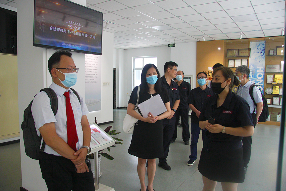 簽約儀式開(kāi)始前,肖副總陪同童彥君總經(jīng)理一行參觀了集團(tuán)理化實(shí)驗(yàn)室、高速鍍車間、焊接培訓(xùn)基地及企業(yè)展廳,詳細(xì)了解了金橋焊材集團(tuán)的發(fā)展情況、生產(chǎn)布局及工藝。童彥君總經(jīng)理表示,對(duì)侯立尊老總的家國(guó)情懷、創(chuàng)業(yè)事跡深感敬佩,也對(duì)金橋焊材集團(tuán)不忘初心,專注本業(yè)的戰(zhàn)略規(guī)劃給予高度贊揚(yáng)。