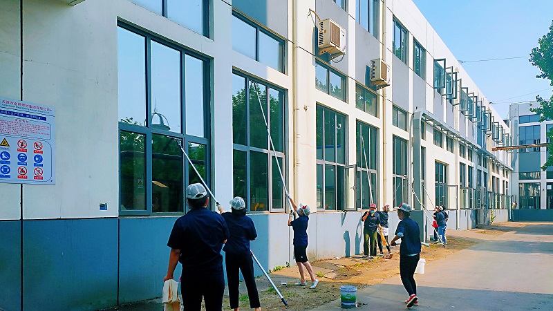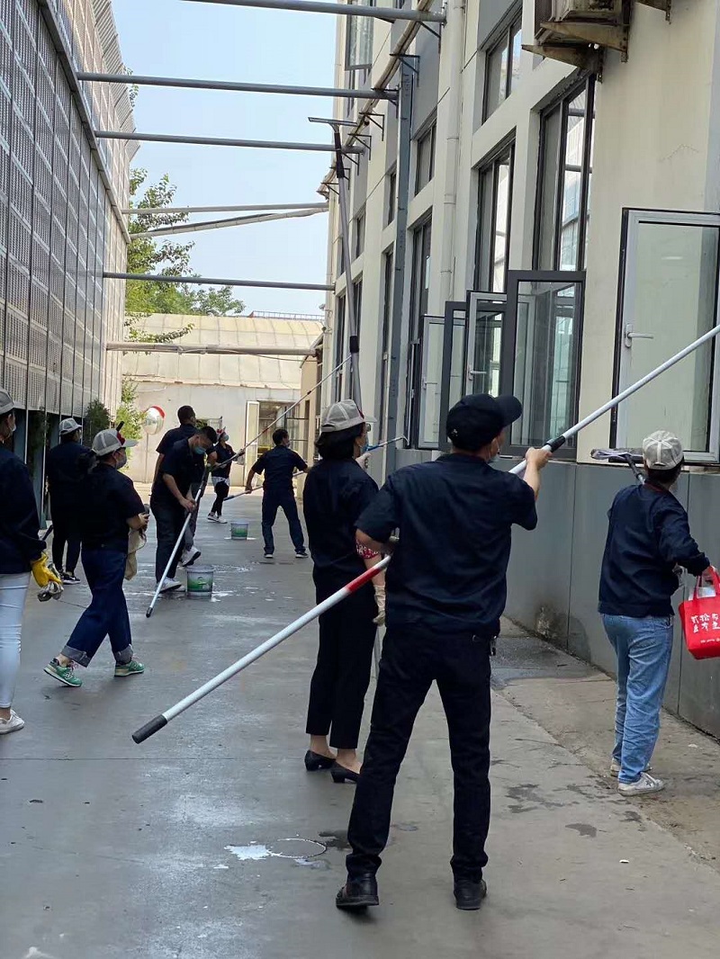 黨員們彼此配合、分工明確、盡力盡責,擦玻璃、拖地、擦門簾、拔草等,不放過任何死角,不怕臟、不怕苦、不怕累,呈現出一派熱火朝天的勞動景象。在義務勞動的同時,黨員們注重疫情防護、嚴格按照車間管理要求佩戴好口罩、工作帽,遠離運轉設備,文明勞動。