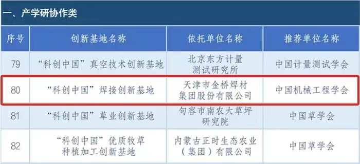 “科創中國”創新基地是中國科協推動產學研協同創新和科技成果轉移轉化的合作載體,是“科創中國”各類資源下沉匯聚的承接平臺,旨在促進跨界、跨域、跨境集聚配置創新資源,動員更多人才、技術、數據、資本等創新資源,助力地方經濟高質量發展。金橋集團憑借良好的創新基地基礎、過硬的產品研發和科技攻關能力以及出色的產學研落地轉化成果,被認定為“科創中國”焊接創新基地,成為天津四家入選產學研協作類“科創中國”創新基地的單位之一。