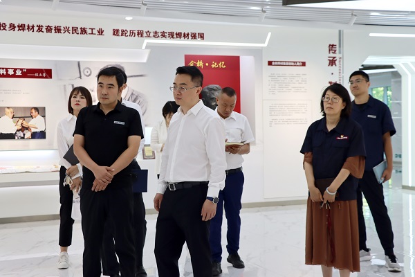 會前,王文雷一行參觀了高速鍍車間、國家級企業技術中心和金橋記憶展館,對焊材行業進行深入了解,對金橋集團數字化、智能化、綠色化發展表示稱贊。
